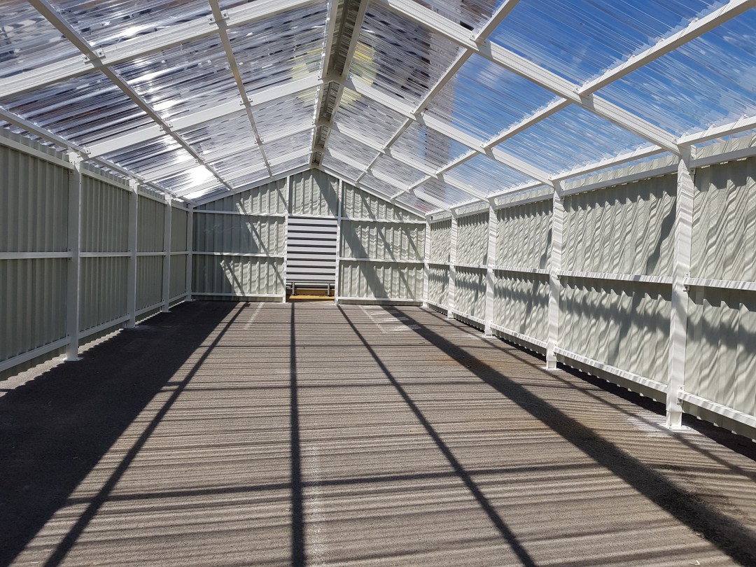 Cet abri deux roues a été réalisée sur la base d'une structure avec toiture double pente translucide et sécurisation par parois en tôle bac acier. Les dimensions de cet abri 2 roues ont été réalisées selon un cahier des charges, sur la base d'une plate-forme de 15 m X 6 m. Cet abri a été conçu et installé par les équipes d'Aloes Urban Design.