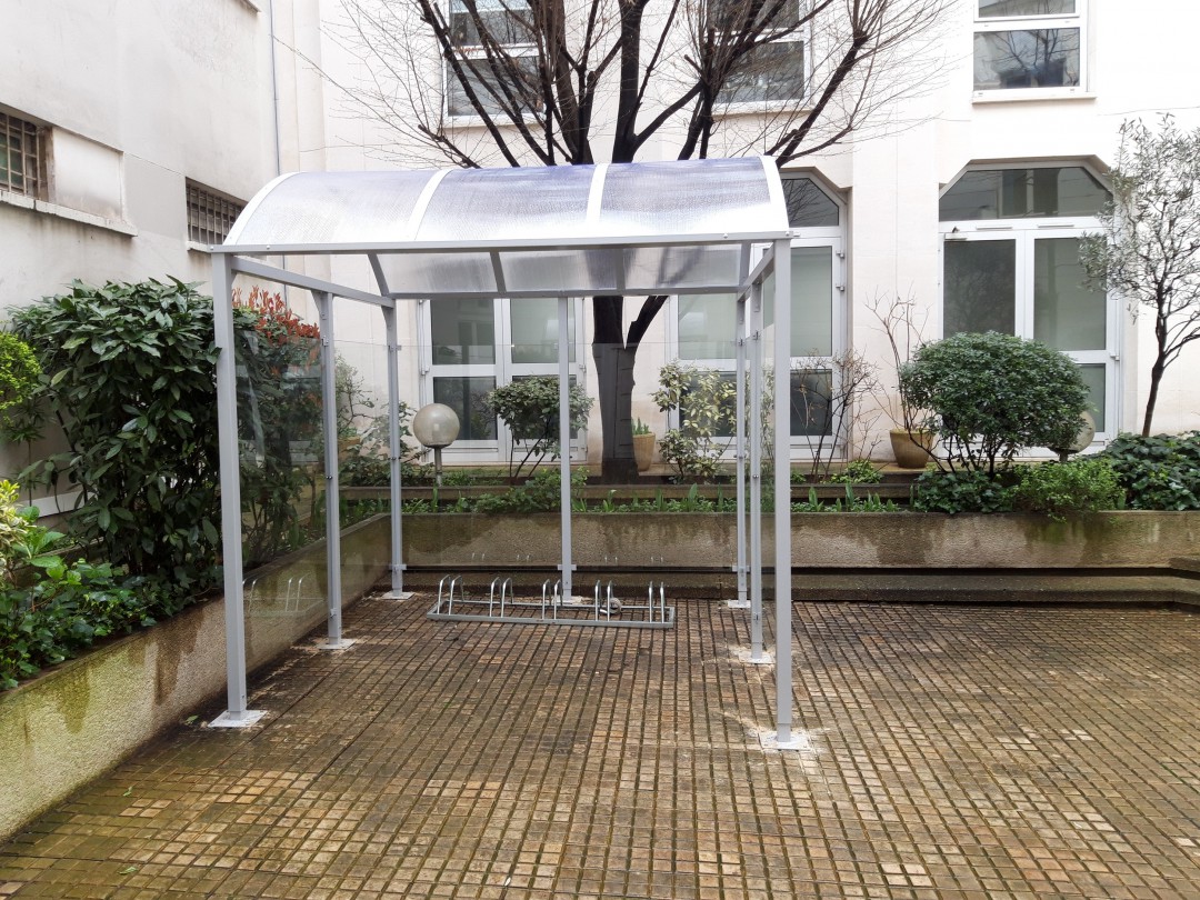Installé sur des dalles, cet abri reçoit 5, ou 6 vélos.