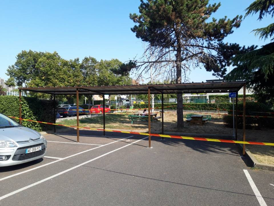Réalisation d'un abri de 10 m x 2.5 m pour protéger les deux roues du personnel de la société Valeo.