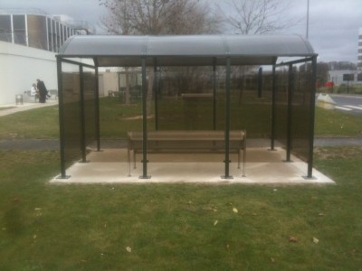 A l'approche de l'hiver, le laboratoire pharmaceutique Delpharm se dote d'un abri fumeurs. Celui-ci est constitué de parois vitrées sécurisées fumées, pour plus d'intimité.
