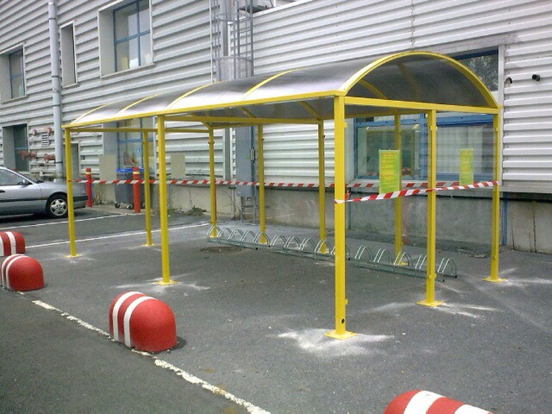 Réservé au personnel, le modèle d'abri 2 roues Vision+ a été retenu pour équiper un site. Celui-ci dispose d'une toiture personnalisé avec un toit en polycarbonate alvéolaire bronze.