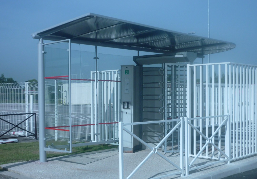 Aloes RED a été retenu pour intégrer plusieurs abris dans l'usine. Concernant l'accès à l'entrée, le modèle Héritage 4,50 m adapté au site a été installé. Il se trouve au niveau des tourniquets.