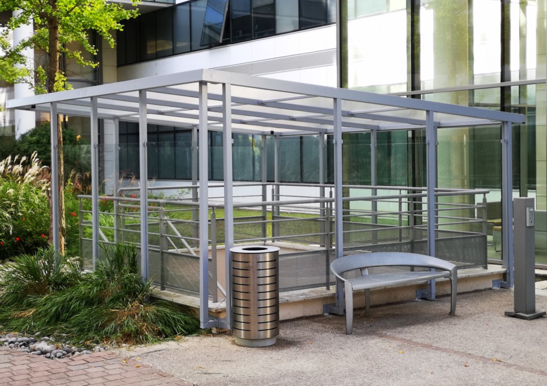 L'objectif ici a été de protéger les sorties de parking de la pluie de manière à éviter tout incident pour les usagers lors des accès par les marches au parking. Trois abris sur mesure ont été installés sans aucune fixation directe au sol.
