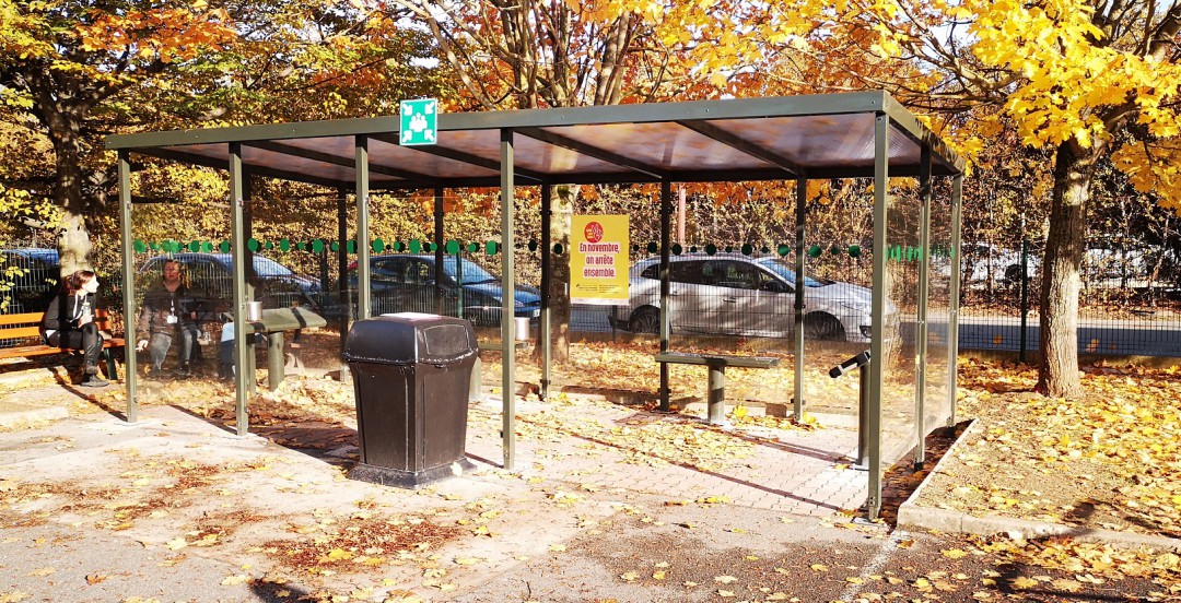 Installation d'un abri fumeurs par le fabricant Aloes RED. Antony (92)